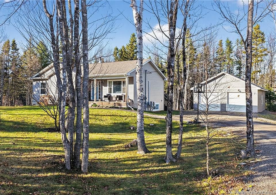 Enjoy country living on a quiet street just a short drive to Downtown Moncton and all Riverview has to offer! Welcome to 74 Bellefield! Located in the highly desirable White Birch Estates in Lower Coverdale. This 2016 built bungalow sits on 1.59 acres of land and is beautifully landscaped with plenty of trees for privacy. The 28x32 detached, insulated garage provides ample storage for vehicles, recreational toys, or even a workshop - offering flexibility to suit your lifestyle with 9' tall by 10' wide doors, 11' walls with the vaulted ceiling reaching 14' in the center. The home itself has space and features today's families are looking for. Step inside to a bright, open concept main floor. The kitchen has beautiful white cupboards, large center island and loads of storage. The patio doors off the dining area open to a deck, perfect for entertaining. The spacious living room has a heat pump and plenty of natural light. Down the hall you will find a large primary bedroom and two good sized additional bedrooms plus a 4 pc family bath. The finished lower level provides additional living space with another bedroom, a family room complete with a wood stove and a large storage area. This neighborhood has direct access to managed ATV Trails and the soon to be complete mountain biking trail. If you are looking for more space and privacy without sacrificing proximity to great schools, shopping and many other amenities then this home is a must see! Book your showing today!