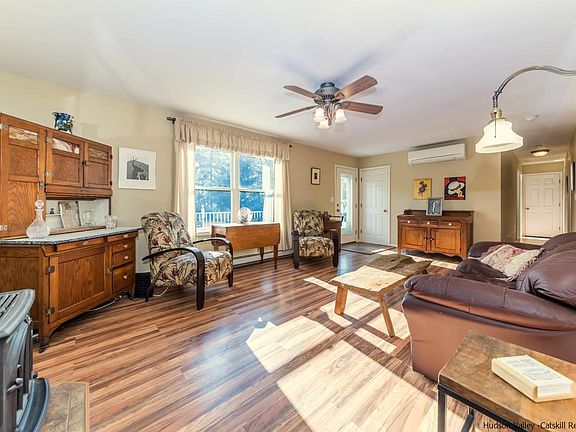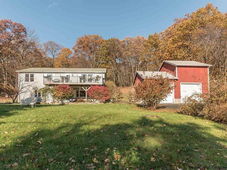 SPACIOUS WELL MAINTAINED 4 BEDROOM 3 FULL BATH HOME JUST MINUTES TO WOODSTOCK CENTER AND EASY ACCESS TO ROUTE 28. PRESENT FLOOR-PLAN IS WELL SUITED FOR AN IN-HOME OFFICE OR PRIVATE GUEST SUITE. POSSIBLE TEENAGERS DREAM COME TRUE. LOWER LEVEL LEFT SIDE HAS IT'S OWN ENTRANCE WITH 2 ROOMS AND FULL BATH. ONE CAN EASILY RECONNECT THIS SPACE IF DESIRED. UPPER LEVEL IS LIGHT AND BRIGHT WITH A FRONT DECK AND REAR SCREENED PORCH LEADING TO YOUR VERY OWN HOT TUB. 2 CAR DETACHED GARAGE OFFERS SECOND STORY STORAGE AND ONE OVER SIZED TALL BAY. PERFECT FOR BOAT, RV OR STUDIO SPACE. LARGE DRIVEWAY WITH PLENTY OF PARKING. ENJOY THE GAS STOVE ON WINTER NIGHTS AND 5 ZONE HEATING SYSTEM. HOUSE IS IN GREAT CONDITION. JUST MOVE RIGHT IN AND BE PART OF THE HUDSON VALLEY. RADON SYSTEM IN PLACE. LOWER LEVEL IS ON GRADE AND INCLUDED IN SQUARE FOOTAGE. Wood Stove in the basement and house has generator hook up.