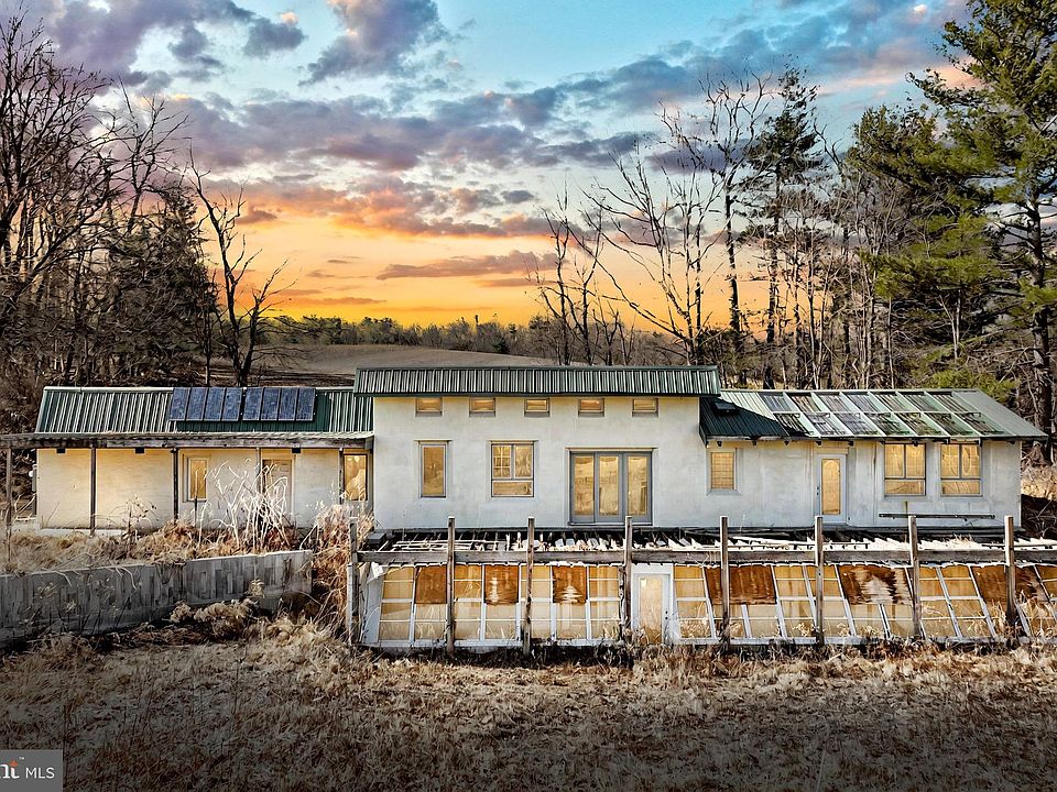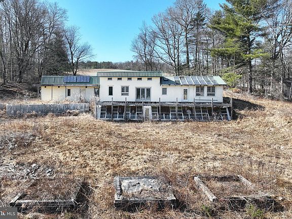 Home is all masonry construction with 2 foot thick walls, hemlock floor joists with 6 inches of concrete poured on top with radiant floor heat. (Mason says "Constructed as a commercial bunker")Roof is the heaviest gauge metal available. Basement is all concrete and consists of 6 cells. Green house with raised beds, and aquaponics for alternative farming system. All situated on 3 acres, with southern exposure and breath taking views. Home is not yet completed, being sold as-is. Seller is looking for a buyer to complete/restore this very unique home. The seller has located and drilled a well, and has recently had a sand mound installed. https://show.tours/e/NdczYxj