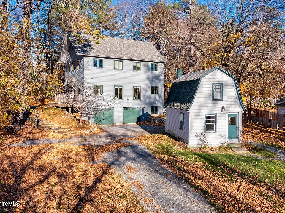 Beautiful contemporary home with open floor plan. Offering three bedrooms and two and one-half baths. Modern kitchen and dining area. French Doors to wrap around AZEK deck. Hardwood floors. Expansive basement with oversized two car garage under. Also, a studio/play house on property.