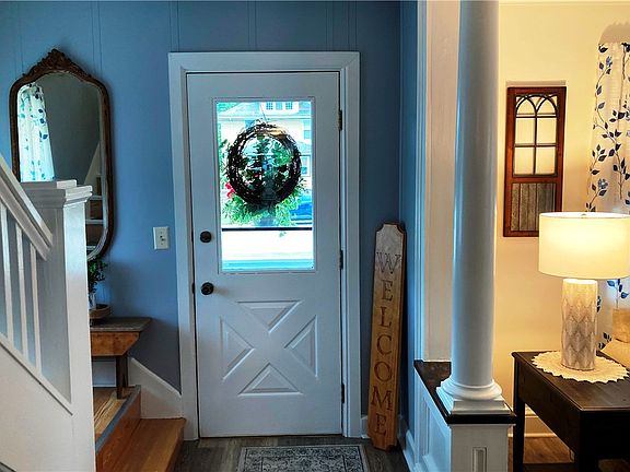 You will not be disappointed when you tour this beautifully maintained 2 story, 3 bedroom, 1 1/2 bath home in Town of Elmira on 1.09 acres. Many updates have been completed through the years with all replacement windows, updated blinds, updated bath, updated electric, vinyl floors downstairs and on front porch, eat in kitchen with Corian countertops, subway tile, gas stove, Bosch dishwasher to mention a few. Living room and dining room offer a beautiful open space with a stand alone fireplace for ambiance and added heat to take the chill off. Bedroom doors have original copper and brass knobs and plates. Basement is full and dry with laundry hookups, 1/4 bath and utility sink which equals a half bath plus loads of storage space. Pull down stairs have been added for access to attic for additional storage space. The front porch is a charming comfortable spot to relax and enjoy nature. The back Trex deck is a great space to entertain and enjoy the view of this beautiful lot and the slate patio with large ceramic pot. Outside offers a very lovely deep lot with a fenced in area with a small stand alone shed (approx 30 in x 24 in x 72 in high). Beyond fenced area is a large shed 12 ft x 24 ft with a new tin roof. This large shed offers great space for workshop and storage. Lot next door is included in the 1.09 acres and has a wooded area, a 24 x 24 slab in place, water, sewer and electric already there. You will be delighted at the amenities that are in place for your enjoyment. Prequalified buyers only. Prefer 24 hours notice. Enjoy your showing.