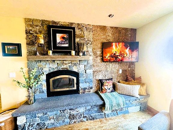 Heated garageCustom stone fireplaceWalk in showerBeautifully renovated homeAir conditioningSoaking tubTimeless charm