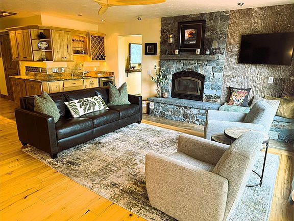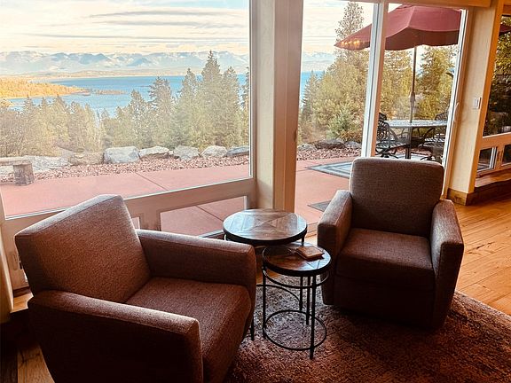 Exceptional retirement home/summer home on two lots (close to 2 acres) with panoramic views of Flathead Lake and surrounding mountains. Swimming and boat launch across the street. This beautifully renovated home blends modern luxury with timeless charm in the lakefront village of Somers, Mt. Sun-drenched Great Room with custom stone fireplace perfect for entertaining. 2+ bedrooms w extra Custom Murphy Bed and large primary w/walk in closet, 2.5 bathrooms (soaking tub and walk in shower), front and back patios, heated garage and extra parking. Gourmet kitchen boasts granite countertops, wine refrigerator and bar, stainless steel appliances and breakfast bar overlooking the open concept living space with cozy wood fireplace. In-floor heat, air conditioning, and wood fireplace. Boat slips available in Lakeside. Centrally located close to Somers, Lakeside, Bigfork, Whitefish, Kalispell, Glacier National Park, 2 Ski Resorts and 7 golf courses. This is the ultimate retreat.