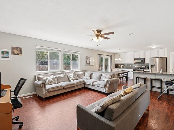 Updated Heber home offers outstanding value with a newer roof (2022), furnace and A/C (2019), updated kitchen with granite countertops (2021), new windows, patio door, and appliances (all in 2024). A $10,000 flooring credit is included at the list price. The main level features an open concept kitchen, dining, and living area; on the second floor, bedrooms and a primary suite featuring a private bath and walk-in closet. The finished basement includes a second family room, bedroom and updated bathroom. Outside includes a fenced yard, garden plots, paved patio, and 2-car garage. Located in a quiet and convenient neighborhood with a playground, and sports court. This home is close to shopping, dining, and outdoor recreation.