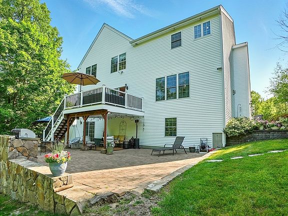 This stunning home blends luxury and comfort in every detail. Sun-drenched interiors feature hardwood floors, oversized windows, and elegant coffered ceilings in the dining room. The gourmet kitchen offers quartz countertops and generous storage. Enjoy the bright TV room with gas fireplace or entertain outdoors on the elevated deck or stone patio off the walk-out basement, surrounded by beautiful landscaping and a built-in grill. The lower level is ideal for extended family or in-law use, featuring a wet bar/kitchenette, full bath, laundry, custom closet, and spacious living area. The luxurious primary suite boasts cathedral ceilings, gas fireplace, spa-like bath with jetted tub, shower, double vanities, and an extraordinary custom closet. Additional highlights include a two-car garage, upstairs laundry, and a home office that can double as a bedroom. With flexible living space, this home can comfortably accommodate 4/5 bedrooms. Centrally located ,refined living at its finest!