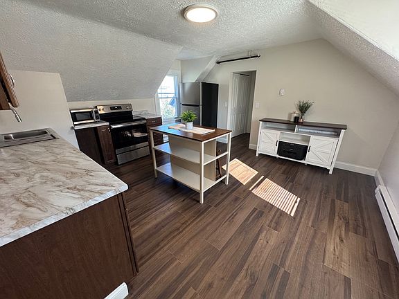 Furnished as shown for an extra $100/month (Bed, dressers, tables, chairs, TV's, stands, etc. Newly renovated 1 bedroom apartment. Recently renovated with stainless steel appliances, heat pumps/AC, flooring, 1 off street parking space included and plenty of on street. New laundry in unit. Large living room, large bedroom, plenty of closet storage, back deck and rear yard. Water, trash, and snow removal included, tenant pays electric (heat and AC), cable, hot water. Unit is on second floor. Grocery store and downtown Biddeford within walking distance. 5 Minutes from University of New England UNE and local beaches.