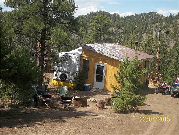 Move in ready, travel trailer with addition, water source,solar ready, wind turbine, wood heat, organic garden, OWNER FINANCING, endless views, the Rockies, Sugarloaf Mtn., seclusion, off the beaten path, water tank, pump,generator comes with. Can be all yours, recreational retreat or year-round living , hunting, fishing close by.