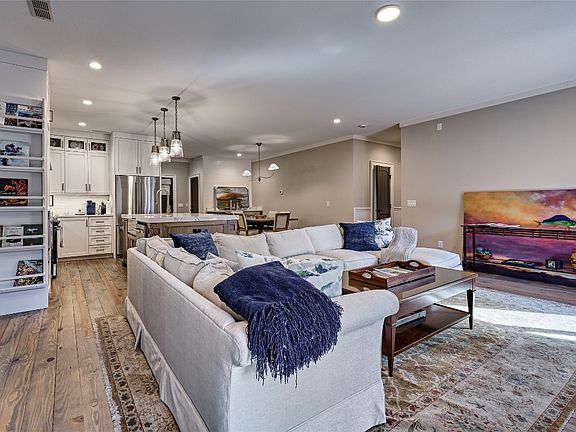 Modern light fixturesDedicated officeIsland for additional seatingLaundry roomCustom cabinetry