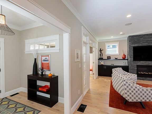 Chic and stylish custom built 2014 Craftsman style Colonial in desirable Broadmeadow neighborhood close to schools & train features tasteful decor. The inviting front porch welcomes you into this magnificent property streaming with natural light. Open, flexible & modern floor plan allows for fabulous entertaining & family living. Living room with hardwood floors, picture windows & fireplace leads to dining room through French doors featuring incredible mill work and moldings. Gourmet Chef's kitchen with high end appliances & center island opens to bright & cheery breakfast area. Fabulous family room with thought out built in desk area includes rare to find enclosed Murphy bed brilliantly tucked away with access to full bathroom for guests. Step outside from the living and family rooms onto the wrap around deck overlooking level yard. Master Suite includes generous walk in closet & stunning bathroom with double vanity. Walk out lower level with playroom & fitness room. House beautiful!