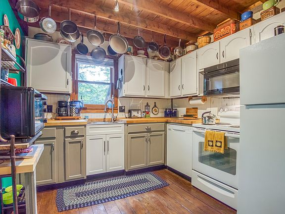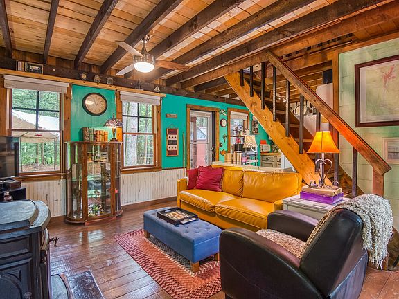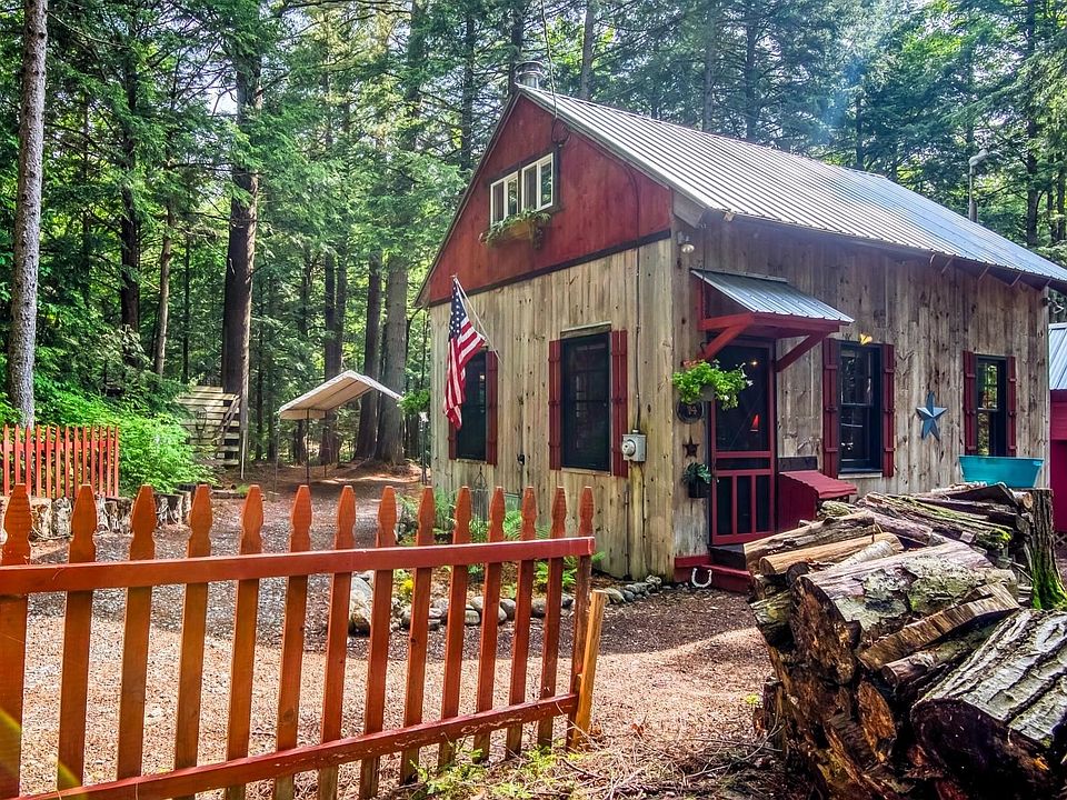 Picturesque cabin along a rolling, rambling brook in Shelburne. Waterfall, eddies and pools follow the property line on a heavily treed lot. The cabin is used seasonally every spring, summer and fall, and is cozy and warm with all the comforts of home. Full size range, microwave, dishwasher, high efficiency washer, electric dryer and water heater are included. Wood floors on the first floor and carpet and laminate on the second floor which has loft bedrooms. The first floor features a well-equipped kitchen, living room with wood stove, satellite TV, and screen porch. There is also nice ¾ bathroom with fiberglass shower stall and laundry. On the outside you will find two sheds, a portable carport and an outhouse. Home is on a private .29-acre lot and is a rare find in desirable Shelburne NH, near all the White Mountain attractions. Lower tax assessment due to camp / seasonal assessments.