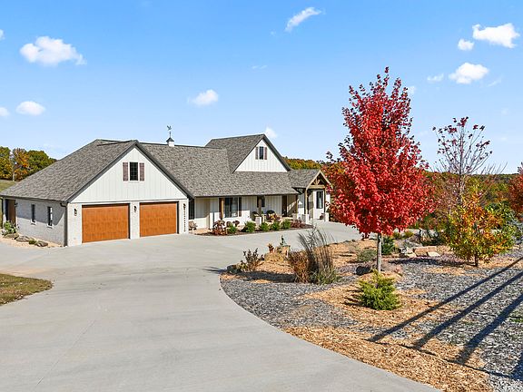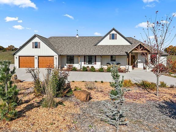GREEN ACRES IS THE PLACE TO BE! Farm livin really is the life for you ---- only this isn't Hooterville! Enjoy the perfect blend of country privacy and city convenience with all paved roads leading right to your door. As you meander down the asphalt drive, take in the beauty of 33 m/l rolling acres, dotted with two tranquil ponds and enclosed by welded steel pipe fencing -- ideal for cattle, horses, a hobby farm or simply soaking in the serenity. A metal hay barn (84 X 60) with tack/storage room) and a metal shop (30 X 40) with concrete floors, electricity and heat. AND THEN WE FIND THE SHOWSTOPPING HOME that's just three years young and offering over 3,700 square feet of luxury living. Exterior combines LP Smart Side Diamond Kote and brick for a stunning effect. Step inside through the welcoming beamed entry into a foyer with stunning countryside views. The living room features a vaulted beamed ceiling, floor-to-ceiling stone fireplace (vented propane) and expansive windows that fill the space with light and scenery. The open floor plan flows effortlessly into a chef's dream kitchen, highlighted by a 5' X 7' matte quartz island with seating, prep sink, five-burner induction cooktop and abundant workspace. Elegant cabinetry combines open shelving, glass fronts and solid doors, all illuminated by over, under and interior cabinet lighting -- perfect for showcasing your treasures. Two walk-in pantries flank the sink area (one currently being used as a small office). Step out to the large screened deck with its tongue-and-groove ceiling and enjoy peaceful mornings or golden sunsets over the rolling pastures. The primary suite is a true retreat with open deck access. French door walk-in closet, curbless tile shower, freestanding soaking tub, large linen closet and spacious raised double vanity. Down the hall, you'll discover two additional large bedrooms, a 3/4 bath, laundry and mud room, plus a flex space currently used as a sewing center.