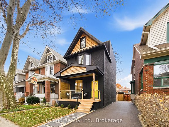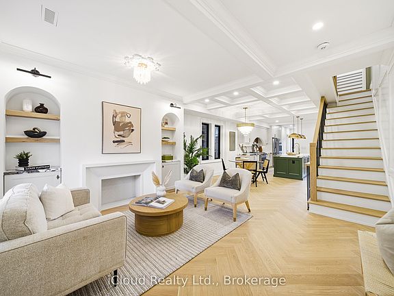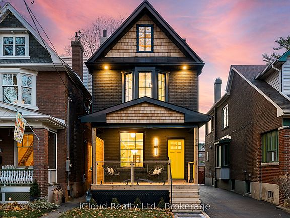 A beautifully reimagined, fully renovated three-storey detached residence offering 4+1 bedrooms, 5 bathrooms, and a rare laneway-accessed double garage, this home blends refined design with thoughtful functionality in one of Toronto's most desirable neighbourhoods. A welcoming covered porch leads into a main floor that feels both elegant and inviting, where curated architectural details-white oak herringbone floors, custom millwork, restored heritage elements, coffered ceilings, and designer lighting-create a seamless flow through the open living, dining, and kitchen areas, complemented by a custom pantry with integrated bar and a bespoke mudroom at the rear entry. The second floor features three well-appointed bedrooms, including one with its own ensuite and two connected by a contemporary Jack and Jill bath, along with a dedicated laundry nook and excellent storage. The entire third level is dedicated to a private primary retreat with soaring ceilings, a built-in closet plus a separate walk-in closet with custom organization, a luxurious spa-inspired ensuite, and a walkout to a serene rooftop deck. The finished lower level offers a generous recreation space, an additional bedroom and bath, ample storage, and a separate walk-up entrance ideal for extended family or flexible use. The exterior is equally thoughtful, enhanced by warm wood accents, a spacious entertaining deck, landscaped grounds, upgraded lighting, and a double garage equipped with EV charging. With zoned climate systems, premium mechanicals, and sophisticated finishes throughout, this home delivers comfort, craftsmanship, and understated luxury. Located steps to Danforth Avenue, Pape and Donlands subway stations, top-rated schools, parks, the hospital, library, and a vibrant selection of shops and restaurants-with quick access to Downtown Toronto, the Beaches, and major routes including the DVP and QEW-this residence offers an exceptional lifestyle in a truly prime setting.