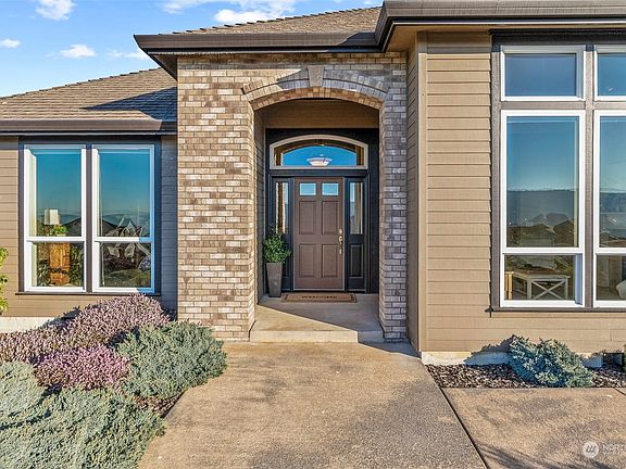 Beautiful single story home with amazing views! NEW carpet! Grand entrance welcomes you with 12' ceilings with a desired split bedroom floor plan. Formal living and dining with lots of light, taking in views of the Columbia River by a cozy fireplace. Great room with built ins, fireplace...large breakfast nook open to spacious kitchen with granite counters, SS appliances including a double oven, NEW gas stove and NEW refrigerator, generous island. Primary suite includes a luxurious jetted tub, tiled shower and walk in closet. Two spacious bedrooms plus the den can serve as a 4th bedroom. Turn around driveway...patio facing the Koi pond and river view to enjoy the sunsets! Over one acre in a gated community. Schedule your tour today!