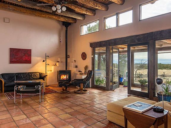 A versatile, private, well maintained property with VIEWS on nearly 5 acres in Arroyo Hondo has arrived! Its heated square footage of 3150 square feet, which includes 4 bedrooms plus an office, formal dining room & 3 bathrooms, makes it a fabulous home for a large family. In addition, you'll find a Bonus room/Workshop attached to the finished, oversized two car garage, and a lovely sunroom. The Master and "mini Master" bedrooms have kiva fireplaces, as well as private patios. Of special note are the old viga and beamed ceilings throughout. Loving care is obvious in the many outdoor planted areas. With many uniquely authentic Southwestern touches, and direct access to the Arroyo Hondo trail, this home feels removed, but is just a stone's throw to downtown Santa Fe.