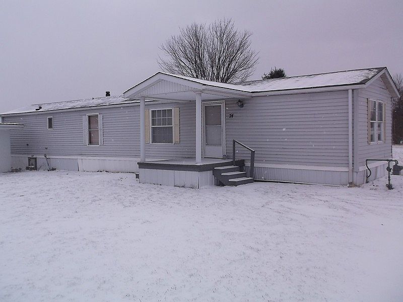 Great affordability at $29,900 with a nice one story mobile home situated on a 0.40 acre site. Public water, 1 car detached garage and shed. Enclosed rear porch overlooks fields. Nice neighborhood and very close to town. Open floor plan with lots of kitchen cabinets.