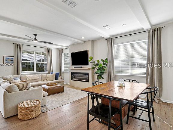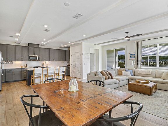 Experience the best of Lowcountry living in this beautifully customized 2022 Palmera II home, perfectly positioned in the highly sought-after Lakes at New Riverside community. Inside, this 4bed/3 bath single level home offers a flexible layout, high-end finishes, and numerous upgrades that elevate its charm and livability. The open-concept kitchen features upgraded cabinetry, quartz countertops, a gas range, and an oversized island overlooking a spacious great room with custom beams, an electric fireplace, and shiplap detailing. The adjoining screened patio provides the perfect spot for entertaining or relaxing year-round.The luxurious owner's suite offers a spa-style bath with dual vanities, a walk-in shower, and a large walk-in closet. A private home office provides an ideal space for remote work or study, while the standout feature - The EXTRA SUITE- includes a kitchenette, full bath, and private entrance from the covered front porch, offering the perfect setup for multi-generational living or extended guests. Custom improvements and designer details throughout include: Extended paver driveway, fenced backyard, Ceiling beams, upgraded trim work, Board-and-batten accents in entry and primary suite, a redesigned laundry room with new cabinetry, tile flooring, and countertops, Bathroom upgrades with Roman clay textured finishes, shiplap walls, and new lighting. Less than a five-minute walk to the neighborhood pool, pickleball courts, playground, and miles of scenic walking and biking trails, this property blends modern design with a warm, family-friendly lifestyle. Located within Bluffton's thriving New Riverside corridor, residents enjoy the perfect balance of peace and connectivity - just minutes from Palmetto Bluff, Historic Old Town Bluffton, Hilton Head Island beaches, Savannah GA, and local airports. Surrounded by preserved green space, top-rated schools, and growing retail and dining options, this master-planned community was designed for those who value both convenience and a slower-paced, outdoor lifestyle. Combining community amenities, a thoughtful floor plan, and modern Lowcountry design, this home captures the lifestyle, value, and charm that make Bluffton so special and present a rare opportunity to own a move-in-ready home, within Bluffton's fastest-growing and most desirable areas.