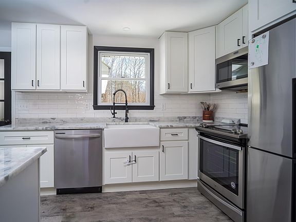 Welcome to your MOVE-IN ready home at 74 Maple Ave in beautiful Hampstead. Set on 1.1 acres of land, this charming remodeled Raised Ranch boasts over 1,800+ sqft of living space, including 3 bedrooms, 2 full bathrooms, and a spacious 2-car garage with a loft above. Relax in the light-filled spaces elevated by modern touches throughout the home. Inside, you'll find a beautifully updated kitchen with new white shaker cabinets, Quartz counters, stainless steel appliances, and a farmer sink. The cozy kitchen leads to an enclosed 3-season room with heat & newer windows, offering stunning views of the private backyard. Spacious and bright, the primary bedroom features a new custom tile shower, while the secondary bedrooms are generously sized. Outside, you'll love the new rear deck and patio, perfect for entertaining guests or enjoying the sunshine + a double garage for your vehicles. Set amongst nature within driving distance to restaurants, shops, and amenities. Showings to begin at open house on 3/11/2023 at 11:30am