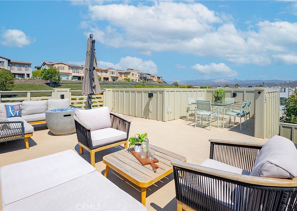 Nestled within the highly sought-after Trellis neighborhood of Esencia, this beautifully upgraded home showcases the community’s largest floor plan, offering three spacious bedrooms plus a versatile office that can easily be converted into a fourth bedroom. Trellis is celebrated for its charming collection of modern farmhouses, perfectly capturing the essence of contemporary South Orange County living. From the moment you arrive, you’re welcomed by a picturesque white picket fence, lush landscaping, and a generous wraparound front porch that sets the tone for the warmth and style found inside. The first level features a thoughtfully designed guest bedroom and a full bathroom, creating an ideal space for visitors or multi-generational living. Upstairs, the expansive second floor embraces an open-concept great room design, where the kitchen, dining, and family room flow seamlessly together. The kitchen has been modernly appointed with quartz countertops, gray cabinetry, stainless steel appliances, a designer backsplash, and durable faux-wood flooring. A custom shiplap wall and Restoration Hardware ceiling fan add stylish character, while the wraparound balcony extends the living space outdoors, providing the perfect setting for entertaining or enjoying the coastal breeze. The primary suite offers a peaceful retreat with a spacious walk-in closet and a luxurious en-suite bathroom featuring dual sinks, a romantic soaking tub, and a walk-in shower. An additional secondary bedroom and bathroom, along with a convenient laundry area, complete this level. The crown jewel of the home is the expansive rooftop deck, an entertainer’s dream with plenty of room for gatherings, relaxation, and taking in breathtaking panoramic views. Blending modern upgrades with timeless farmhouse charm, this residence is a rare opportunity to own one of Trellis’ most desirable homes. Exclusive to Rancho Mission Viejo residents are all amenities in the Villages of Sendero, Esencia, Rienda and future Villages. There are community amenities for all from breath-taking resort-style pools and spas, Esencia school K-8, community farms, fitness centers, guest house, putting green, bocce ball courts, tennis and pickle ball courts, playgrounds, coffee shop, fire pits, an arcade and so much more!