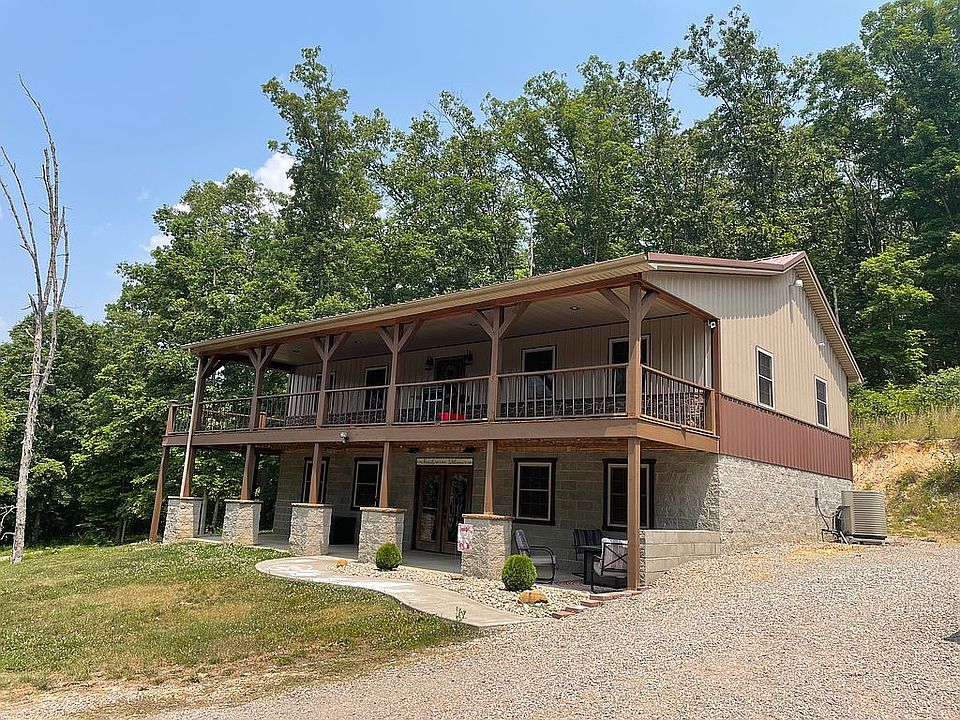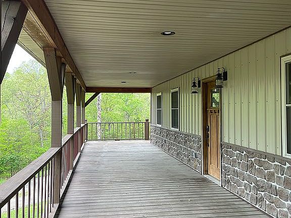 Rustic raised ranch situated on 5.035 acres m/l will be sold with adjacent 5.007 acre tract. House and 10.042 m/l $369,000 . Detached 24 x 32 garage. New Payne Heat Pump and Bryant Air Handler 2024 with 10 year transferable warranty. 2 wood pellet stoves for additional heat source. Equipped kitchen with newer refrigerator (July 2023). Tankless water heater. Open concept kitchen and living room with vaulted tongue and groove ceilings and walls. Huge storage room on lower level with carpet. Wrap around upper deck (10x46 portion is covered) and covered concrete patio (10x46) ground level. Private setting close to elementary school and town. FOR APPOINTMENT: Call Amy Stratton 740-710-0169