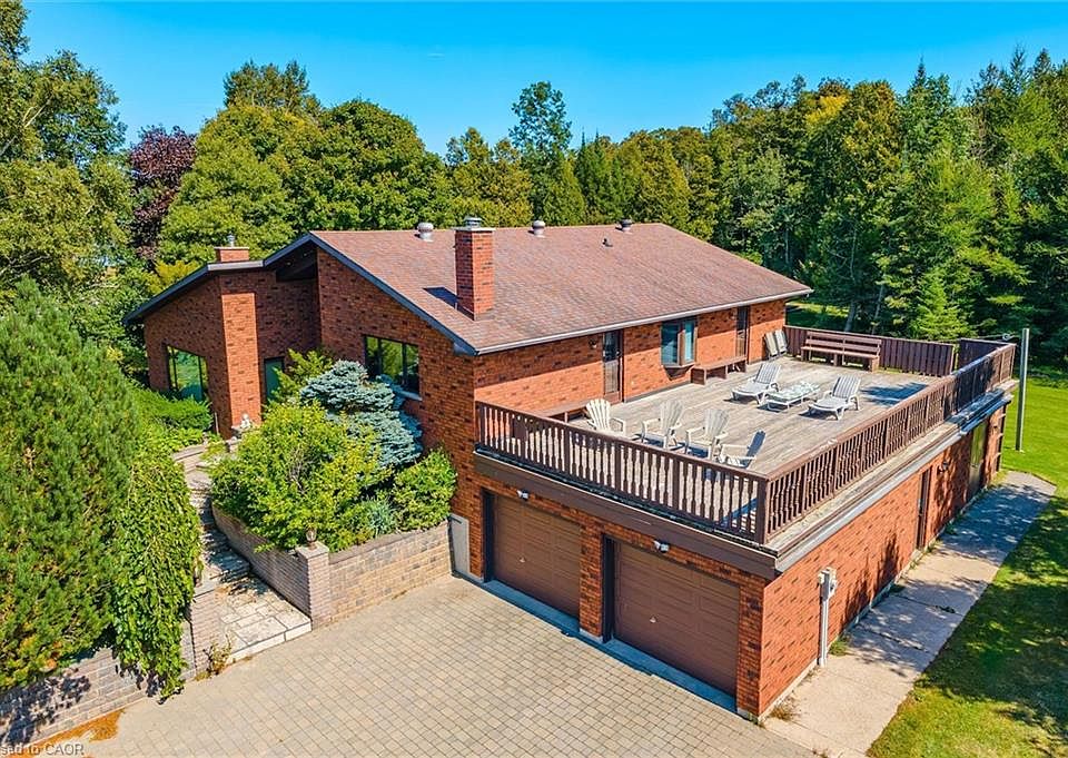 Welcome to Miramichi Bay Road Saugeen Shores! This magnificent side split home sits directly on Miramichi Bay, with panoramic views of Lake Huron from multiple sides. This home was built for entertaining with up to 5 bedrooms, multiple eating areas and outdoor spaces. The approximately one third of an acre property is beautifully landscaped with mature trees and perennials, interlock driveway with ample parking, concrete walk ways, steps and retaining walls. This home features an inviting two story front entry with large foyer open to a spacious vaulted great room, featuring a stunning wall to wall stone wood burning fireplace. This spectacular room is accented with custom wood beams, solid oak floors and other mill work. The formal dining room between the great room and kitchen allows for easy family gatherings in all seasons. The full kitchen includes an eating area that comfortably seats six and exits directly onto the large covered porch with panoramic lake views. This area has always been the heart of the home. The upper floor features three bedrooms and a large bathroom. One of the bedrooms features a kids "bunky" for sleepovers. The cozy lower level features a family room with wood stove and two guest bedrooms on ground level above grade, one with ensuite bath. There is a huge wood deck over the double garage with magnificent lake views where you can take in this area's renowned magical sunsets. This home was built to exacting standards, and is heavily insulated to survive the harshest weather to ensure you can enjoy living here year round. There are many trails to hike in the woods directly behind the home as well as the lake trail that runs along the shoreline directly in the front of the house. Port Elgin, Southampton, grocery, shopping, marina and community centres near by. Wonderful year round living.
