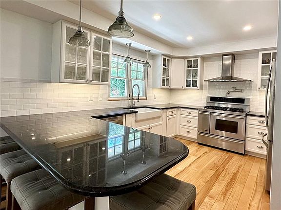 Welcome to this stunning oversized ranch home located at 74 Parkwood Drive. This beautifully designed property offers a spacious and comfortable living experience. With 3 bedrooms and 2 newly renovated bathrooms it is perfect for those seeking a modern feel. Step inside to a beautiful open floor plan with a huge, newly added sunroom. A double sided fireplace is sure to keep you cozy during the winter months. The primary bedroom offers a beautifully appointed ensuite bathroom for added privacy. The spacious kitchen has granite countertops and stainless appliances. Hardwood floors, Anderson windows, red cedar shingles, new windows and roof are just a few of the updates that have been done. A large patio and outdoor fireplace offers the perfect dining area for those summer nights. Property abuts Potter Woods for a very private feel. This home is not to be missed.