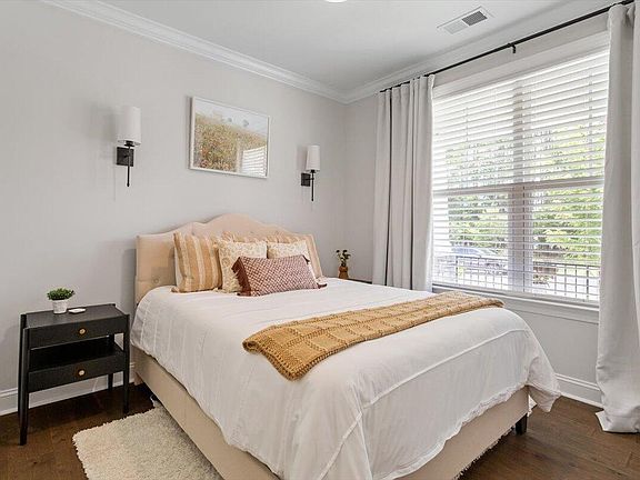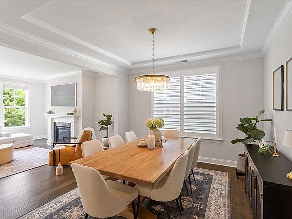 Nestled on a premium wooded lot in the gated, resort-style community of Legacy at Jordan Lake, this 2022 customized home blends upscale comfort with serene surroundings. From the moment you arrive, you'll be drawn in by the timeless curb appeal, private wooded front and rear views, and one of the most coveted locations in the neighborhood. Step inside to discover an open-concept layout flooded with natural light from oversized rear windows, enhanced by soaring 9-foot ceilings on both the first and second floors. The heart of the home features an upgraded kitchen with an expansive island, quartz countertops, a walk-in pantry, and seamless flow into the dining and living areas—ideal for daily living and entertaining alike. Thoughtful customizations set this home apart, including luxury engineered hardwoods throughout the main floor and newly added wood flooring in the primary suite to match—creating a warm, cohesive feel throughout. Premium window treatments include Lutron smart shades, 2.5-inch blackout blinds, and plantation shutters that combine comfort, light control, and modern sophistication. A main-level guest room offers flexibility, while a custom drop zone off the garage streamlines everyday organization. The primary suite is a true retreat, with wooded views, a spa-inspired bath featuring a frameless glass shower, soaking tub, dual vanities, and two walk-in closets outfitted with custom built-ins. Upstairs, you'll find additional bedrooms with built-ins, a shared bath, and a versatile third-floor bonus room perfect for a media room, play room, home gym, or creative space. The fully fenced backyard includes a 6-foot white vinyl privacy fence—ideal for pets or play—backing to peaceful, undisturbed woods. The spacious 3-car garage is upgraded with sleek epoxy flooring for a clean, finished look that's both durable and stylish. Legacy at Jordan Lake offers exceptional amenities: a resort-style pool with sweeping hilltop views, clubhouse, tennis and pickleball courts, a fitness center overlooking the greenery, playgrounds, trails, and more. Located just 10 minutes from Jordan Lake, the community offers a rare balance of privacy, luxury, and convenience.