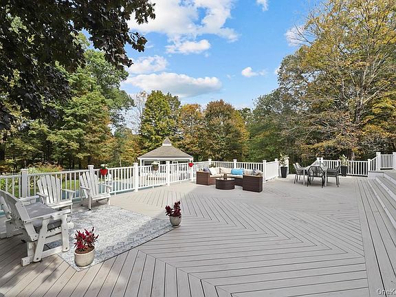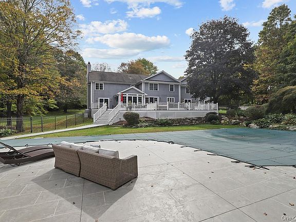 Set on 3.7 private acres in South Salem, NY, this inviting country estate offers an ideal blend of space, comfort, and outdoor enjoyment. The home features a gorgeous eat-in kitchen, vaulted ceilings, custom millwork, built-ins, and expansive entertaining areas, including a massive composite deck with lighting that spans the back of the home and overlooks the heated pool and pool house. The pool house has been tastefully updated and includes a bath, shower, French doors, and its own deck, perfect for summer gatherings or guests. Additional highlights include a whole-house Generac generator, high-efficiency oil boiler (1.5 years old), EV charger, and new high-efficiency propane pool heater. A spacious guest suite with full bath and kitchenette sits above the four-car attached garage, offering flexibility for extended stays or home office use. With excellent curb appeal and move-in ready condition, this property provides a tranquil country setting just about an hour from New York City.