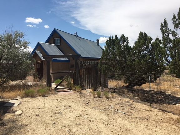 Located between Madrid and Cerrillos with fabulous 360 degree views! The two-story main house has an upstairs bedroom with balcony. Downstairs is a bathroom and a spare room which could be used for office or work room. An unfinished straw bale structure has potential as a workshop, studio, or guest house. There's also a small storage unit and a lean-to and small fenced arena for horses. There are is no heating system. All structures need work. The water supply is a storage cistern. Fix it up to your own taste.