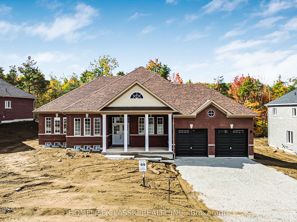 Welcome to 74 Ruby Ridge, a stunning brand-new, never-lived-in 2,170 square foot bungalow set on a picturesque 0.7-acre lot surrounded by the greenbelt in beautiful Oro-Medonte. This exceptional property offers a peaceful Muskoka-like setting just minutes from Barrie, Orillia, and Highway 400, blending the tranquility of nature with the convenience of city access. Step inside to discover a bright, open-concept layout designed for modern living. The upgraded kitchen features extended cabinetry, an extended double-door fridge, and a spacious island, all perfectly positioned to overlook the lush greenbelt for a calm and relaxing view. The family and living rooms flow effortlessly together, creating an inviting space ideal for entertaining or spending quiet evenings with family. This beautiful home offers three oversized bedrooms, including a primary suite complete with a luxurious spa-inspired ensuite and serene views of the surrounding nature. Every detail of this home has been thoughtfully designed to combine comfort, function, and style. Outside, the property impresses with its 99-foot frontage and 310-foot depth, providing endless outdoor possibilities. Whether you envision a garden, patio, or backyard retreat, there's plenty of room to make it your own. The oversized 2-car garage provides ample space for vehicles and storage, while the driveway comfortably accommodates up to four additional cars. Located in a quiet, family-friendly community, this home offers the perfect balance of peaceful country living and modern convenience. A brand-new school is just moments away, along with scenic trails, ski resorts, and local amenities. Surrounded by nature yet close to everything you need, 74 Ruby Ridge is a rare opportunity to experience refined countryside living where modern design meets natural beauty.