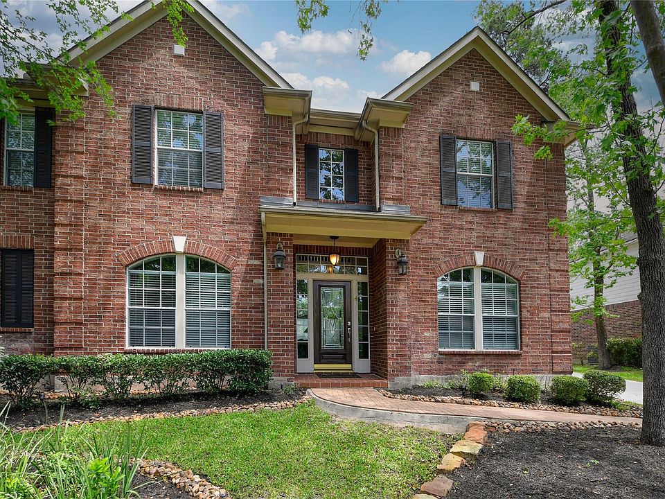 Fantastic location! Lovely curb appeal close to Sterling Ridge-shopping centers & a variety of restaurants; also, playgrounds, hike/bike trails walking distance away, from your front door! This home welcomes you with beautiful wood floors throughout. The home has abundant windows that bath it in natural light, & the open concept kitchen w/breakfast bar overlooks the den; elegant private study w/French doors & built-ins shelves. The lovely formal dining room is spacious w/welcoming high ceilings, when you arrive. The Primary bedroom has a great view of the oasis that is the backyard;Primary bath equipped with multiple shower jets & jacuzzi tub. 2 walk in closets w/custom built-ins. The covered patio in the spacious fenced yard surrounded by mature trees and tropical heated pool/jacuzzi for outdoor fun all year. 4 bedrooms up arranged in a split plan w/2 full baths for each pair of rooms. A game room between them for all. Finished out 2 car detached garage with a 5' oversized extension.