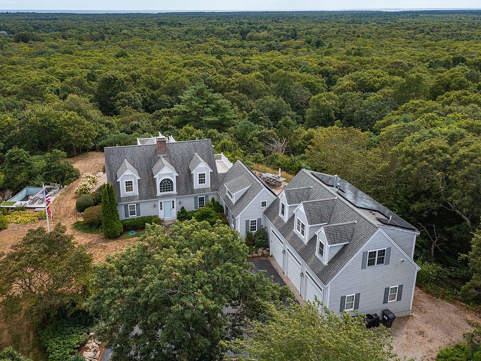 Stunning custom built home privately perched on one of the Capes highest elevated residential lots. This 4,500 sq ft plus property offers an exceptional blend of privacy, comfort, sweeping views, and convenience to beaches, golf, boating, and all of the wonderful amenities the Cape offers. Designed with both style and function in mind, the home features generous living areas, high ceilings and an abundance of natural light throughout. Main level includes an open concept kitchen with premium appliances, a spacious living area with fireplace, billiard room and first floor primary suite option and Dining area with direct access to a large deck-perfect for entertaining while enjoying the elevated vistas. Four bedrooms five and half bathrooms, plus multiple spaces for an office, gym or media room. The primary suite offers a private retreat with spa inspired en suite with walk in closet. Outside the property offers a Putting Green, multiple decks and a much treasured three car garage! It's the perfect blend of luxury, privacy, and everyday convenience......