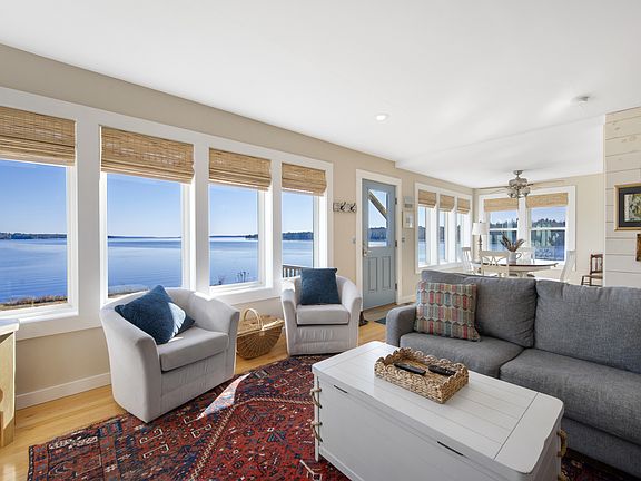 Enjoy breathtaking southerly views of Union River Bay from this beautiful oceanfront home. Thoughtfully upgraded and stylishly furnished throughout, this property offers the perfect blend of comfort, elegance, and classic Maine charm. It has three large bedrooms and two full baths with laundry on the first floor.