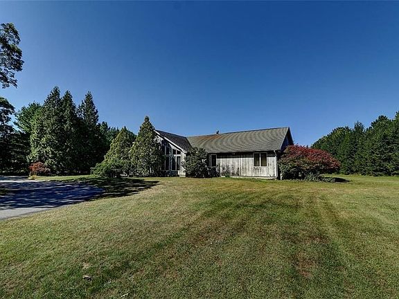 Set on scenic Swan Road, this beautiful one story single family home has all the space you need with its wide rolling lawn and open interior. Step through the French doors, on your right, a family room sits below the front wall of windows, while the radiant kitchen with white countertop and breakfast bar glistens in front of you. The kitchen and a wet bar surround a dining area that all come together to create a perfect atmosphere for entertaining guests. Multiple sitting areas occupy the rear portion of the room and are bordered by floor to ceiling windows, perfect for lounging and looking out onto the patio and pool. Through the slider make your way out to the large patio and rest by the gorgeous in-ground pool in luxury, or head across to the 1700 sqft pool house which features a kitchen, full bath, living area, and indoor regulation size bocce court. Back inside the main house, there is a master bedroom with ample storage and ensuite bath with dual vanities, sitting tub, and glass door shower. The second bedroom, currently being used as a home gym, also features private access to a bath with a glass door shower. The property has a 3 bed septic system. In addition to the attached two car garage, there is also a 60x40 detached garage with car lift, electricity, and water making it perfect for car enthusiasts, contractors, or anyone else looking to set up shop.