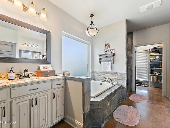 STUNNING! This is truly one of a kind in Pearl River County. The Hills subdivision was definitely named properly with the miles of gorgeous views from this 5 acre hilltop. Gunite swimming pool. The home offers 4 bedrooms, 3.5 bathrooms, an open & split floor plan, crown molding, granite counter tops, custom cabinets, pot filler, formal dining room, breakfast room, amazing master bath with a double vanity, separate tub & shower, massive master closet, a second living room/game room upstairs with a full bathroom, & so much more. Outside you will find a one of the biggest back porches around & an in-ground pool with an amazing view of sunrises & sunsets. The double car garage offers lots of space for more than just cars. There are steps that lead above the garage for plenty of storage or could be converted to a living space or man cave. A new roof that is only a couple months old. Do not let this rare opportunity pass you by.