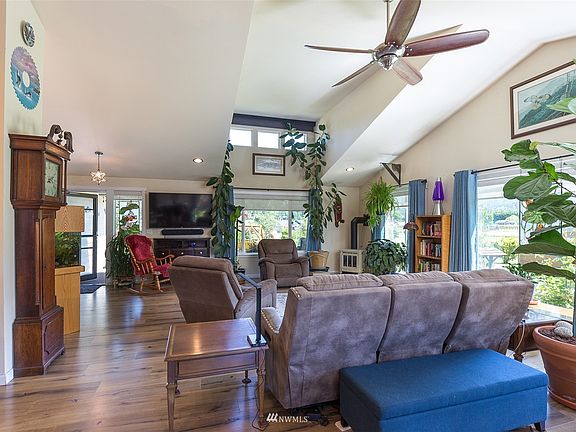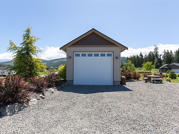 This meticulously maintained one level home features soaring ceilings, dormered skylights, full Southern exposure, floor to ceiling windows, passive solar heat, covered patio, RV Dump & granite counters. Beautiful great room with an open kitchen area and granite island. The primary suite has 5 piece bath w/soaking tub and walk in closet, plus 2 additional large bedrooms & full bath. The park like 1.2 acres will wow with mature landscaping, covered grill area and sauna, firepit area, 2 outbuildings w/power, detached garage/shop with lift and much more! Located on a quiet, paved, dead-end street in popular Happy Valley. Just minutes from town, but it feels a world away. Views are of the Valley & foothills and it is close to trails & beaches.