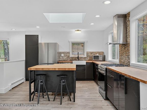 Welcome to your fully reimagined 2025 Catskills retreat—move-in ready the moment you turn the key. This light-filled home has been updated top to bottom: energy-efficient windows, updated electric and plumbing, mini-split climate control, on-demand hot water, newer roof and a whole-house generator that keeps the lights on no matter what. Inside, fresh flooring, crisp paint, new trim and doors flow from room to room. The kitchen gleams with refinished counters, updated cabinetry, stainless appliances, and a wood stove for supplemental heat to keep you toasty all winter long. Step through the sliding glass door onto freshly stained decks overlooking seasonal mountain views and a fully fenced backyard—your private playground for pets, kids, or sunset dinners. Tucked on the edge of the Ashokan Reservoir (a 3-minute stroll to the Rail Trail and Boiceville Bridge), this is Catskills serenity with zero sacrifice on convenience. Kingston's waterfront restaurants, UPAC theater, and Hannaford are just 18 miles away; Woodstock's galleries and live music are 10 miles down the road; New Paltz climbing walls and breweries sit 33 miles east. Groceries and Dunkin' are 2 minutes from your driveway, yet hundreds of acres of protected forest wrap the property in quiet only the mountains can provide. Primary residence or a weekend escape, this home checks every box. Schedule your private tour today