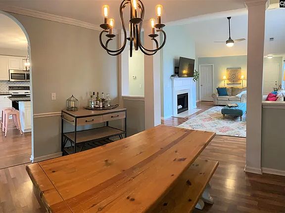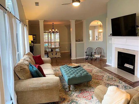 A beautiful timeless home that walks in from a foyer leads to the vaulted ceiling Family Room with Fireplace, built-ins & Palladian Window that is separated by columns to the Formal Dining Room. The spacious kitchen features loads of painted cabinets, granite counters, subway tile backsplash, island, pantry & Breakfast Area. It opens to the Sunroom that makes a great playroom or additional casual space. Master Bedroom offers a large walk-in closet & private bathroom with double vanities and a walk-in shower. 2 additional bedrooms on main level & the 4th bedroom/recreation/media room is the FROG. Great Laundry Room & Drop Zone as you enter from the oversized 2 car garage. Huge fenced backyard viewed from a stone patio as plenty of play area & there's also a firepit for a relaxing evening by the fire. Terrific, updated & rent ready home in desirable community that offers great amenities & convenient to great schools, shopping, restaurants & interstate. Can come furnished or partially furnished per tenant request.