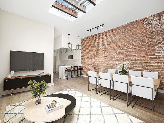 Fresh off a full renovation, entering this apartment you will fall in love immediately with the long red brick wall and beaming natural light through the skylight along with three wooden feature beams!