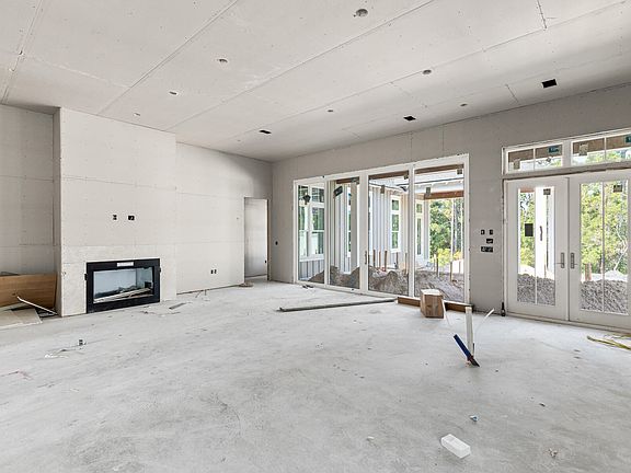 Welcome to the Rosecliffe II by Romair Homes - a beautifully crafted single-level residence that offers an elevated blend of coastal charm and modern sophistication in the sought-after Powell Landing East neighborhood of the Watersound Origins community. This 4-bedroom, 4.5-bathroom home spans 2,609 SF and features 12' ceilings throughout and engineered white oak flooring, creating a sense of grandeur and effortless elegance from the moment you enter. Designed for both everyday comfort and elevated entertaining, the open-concept living area is anchored by a modern yet cozy 42'' fireplace with a stucco chimney. A wall of 10' PGT sliding glass doors blurs the line between indoors and out, leading to a generously sized covered porch, expansive pool deck, and a cabana with fireplace delivering an inviting backdrop for relaxing evenings and social gatherings.