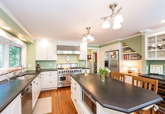 This handsome in-town colonial checks all the boxes! First floor offers updated kitchen with honed granite counters, stainless appliances including a Viking stove. Adjacent to kitchen are powder room, laundry and sun filled family room. Hardwood floors continue throughout dining room and fireplaced living room with a versatile sunroom in front. Second floor features four bedrooms along with two full and one half baths. Spacious attic for storage has expansion potential and one heated room well suited for a home office. Backyard is private, spacious, and stocked with mature shrubs and trees; perfect for gardening, entertaining, and outdoor fun. All of this within a moments walk to town, train, and school!