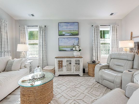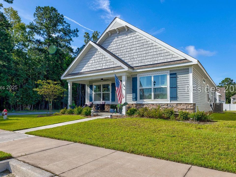 Thinking about buying new construction? Before you grab that shiny brochure, just remember: you'll also be buying your own window sills (yes... window sills), a vent so your hamburger grease actually leaves the house, ceiling fans, a refrigerator that isn't from the appliance graveyard (plus the extended warranty), washer, dryer, upgraded dishwasher, under-cabinet lighting, trim upgrades, and-if you're really lucky-PAYING EXTRA for a corner lot. Surprise! OR... you could buy this home, where all of those things are already done, installed, upgraded, and gorgeous and the home looks like a model. Your wallet can finally unclench. In addition, you'll find craftsman baseboards and windowsills, cottage-style trim, beadboard accents, wainscoting, and statement lighting throughout. The kitchen is a focal point, exuding luxury with quartz countertops, 42" cabinets, under-cabinet lighting, custom backsplash, and premium hardware. Wake up to serene sunrise views over the lagoon from your front porch, then stroll the neighborhood's sidewalks winding past peaceful lagoons and majestic Live Oaks. River Oaks sits quietly at the end of a street that meets the scenic Okatie River, offering Beaufort County living with access to Bluffton Schools. Here, small neighborhood charm meets the best of Lowcountry convenience.