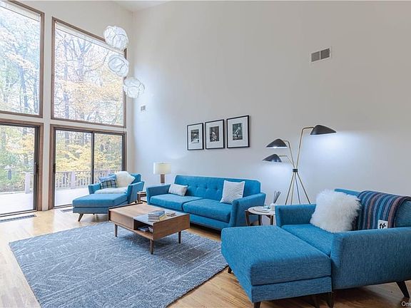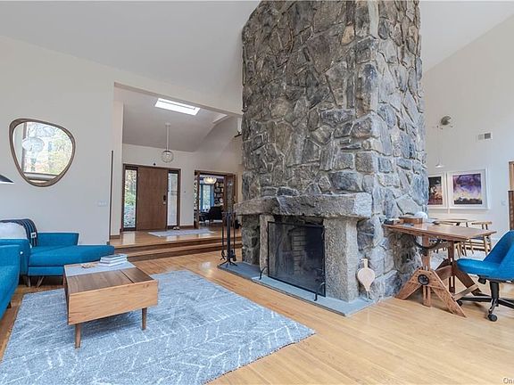 Just one-hour North of NYC, you ll find this perfect getaway home with backyard access to your own private dock on a lake for boating, fishing, paddle boarding and swimming. Enter this stylish Contemporary home to walls of windows and dramatic floor to ceiling, double-sided stone fireplace creating a natural division between the dining and living space. Sliders out to the expansive deck area conducive for indoor and outdoor entertaining. Serious cooks will love the chef s kitchen with the commercial style Garland Range, multiple ovens and sinks, center island with both workspace and dining space. Relax all day in the enclosed three season Sunroom (no heat), perfect for enjoying the deer fenced yard and landscaped grounds. Enjoy a book in the expertly designed den with built-ins and great views of the landscaping and property. The first-floor master suite includes dressing area and jewel-like spa bathroom. An additional 1,445sf finished lower level (not included in square footage) has new carpeting, a recreation room with built-in bookcases and a large windowed office. Conveniently located and minutes from school, town park, shopping, restaurants, The Inn at Pound Ridge, Pound Ridge Golf Club, hiking, Stamford Train and Merritt Parkway.