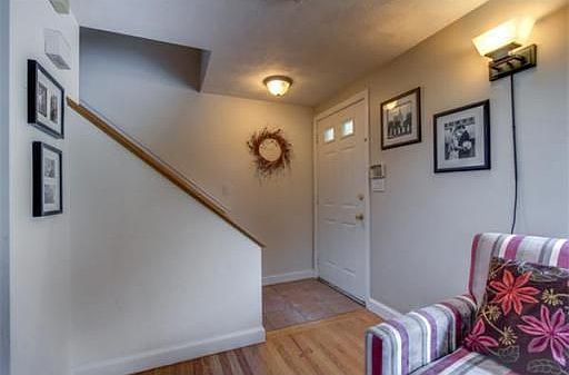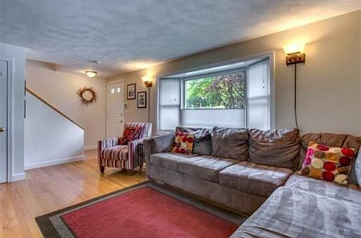 Beautifully Maintained Townhome with tree top views. This home has three good size bedrooms, plenty of closets, Kitchen with granite and good counter space, nice dining room with slider to deck, livingroom with hardwood floors, fully finished downstairs with walk-out to yard, central air, gas heat, off street parking, sprinkler system, freshly painted, renovated in 2007. deeded yard space, Condo fee is for master insurance and reserves, each unit pays their own water/sewer,