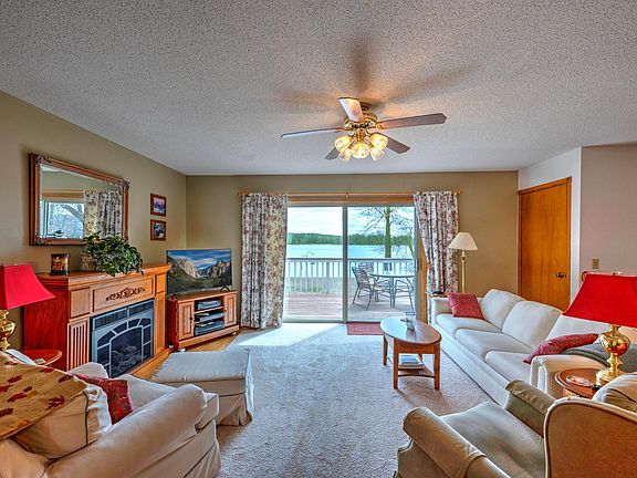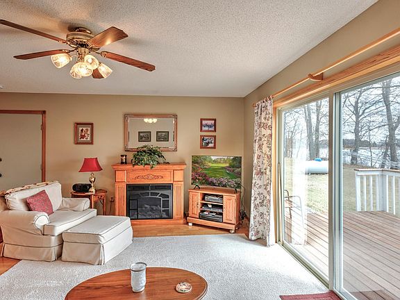 Enjoy amazing lakeshore living, with awesome views and 181' feet of shoreline. Very well maintained 3BR/2BA ranch w/open design. Large master bedroom. Huge 8 foot patio door to a new deck(2020). Gleaming Hdwd flrs, CA, finished lower level, insulated & HEATED garage. There is also a patio on this level lot. Trumpeter swans, ducks, and the fishing is great! The 16x16 shed adds ample storage & the 32'dock is included. All appliances included as well. Truly a must see! Easy TC commute.
