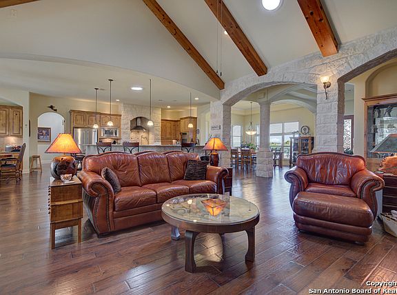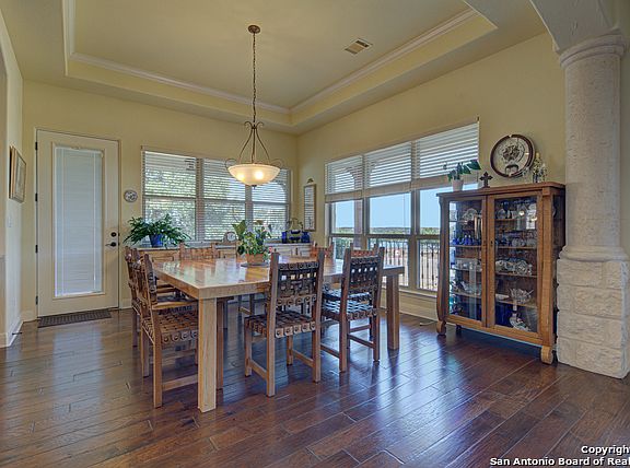 Sparkling inground pool w/spa, multiple patio settings, manicured lawn & views of Canyon Lake. The perfect getaway offering many neighborhood amenities. Beautiful craftsmanship shines in rock accent wall, archways, vaulted ceiling w/beams, columns, built-ins & wood floors in main traffic areas. Gourmet isl. ktchn offers all the gadgets prep-sink, pot filler, stainless steel appliances, plenty of cabinets. Luxury master suite w/sitting room & lavish bath. Wonderful laundry space. Gamerm up for entertaining.