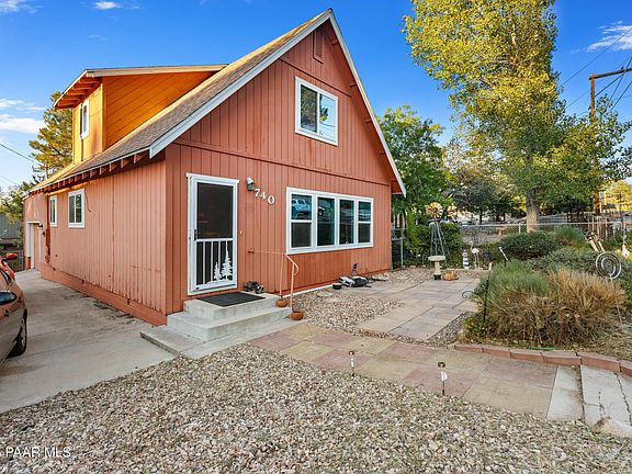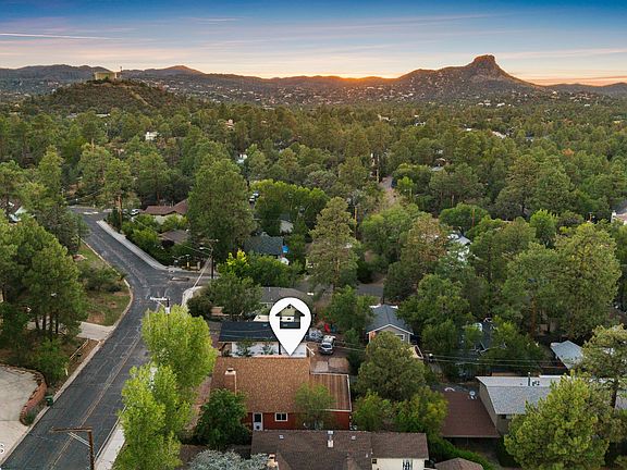Charming classic 1973 A-frame home, ideally located just minutes from Prescott's historic Courthouse Plaza. Tucked away in a peaceful neighborhood close to schools, medical facilities, restaurants, and scenic hiking trails, this home offers both convenience and charm. Warm and inviting open living space featuring beamed ceilings and a cozy wood-burning fireplace--perfect for Prescott's cool mountain evenings. The main floor includes a spacious primary bedroom, while the upper level offers two guest bedrooms and a 3/4 bath, providing a comfortable layout for family or visitors. The yard is easy to manage, and includes the hot tub. Oversized 1 car garage (26ftx16ft) provides plenty of storage in addition to parking. Whether you're seeking a full-time residence, weekend getaway, or investment opportunity, this Prescott gem is not to be missed!