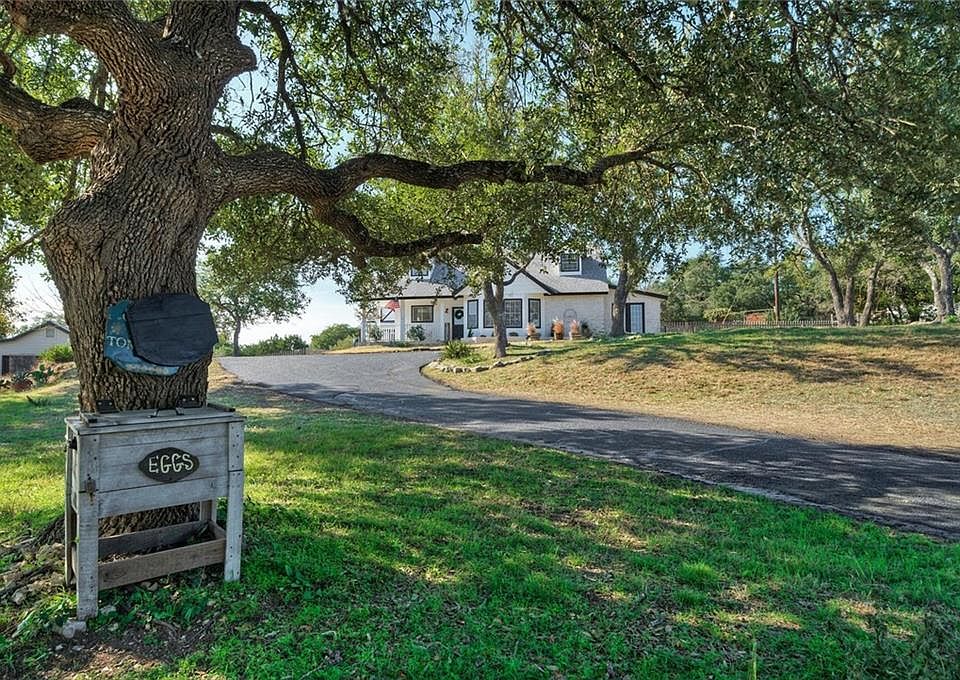 Completely updated home with farmhouse charm on .6 acres in Dripping Springs. Open concept floorplan with tons of charm. Large front porch welcomes you, open front door and be greeted by beautiful wood burning fireplace, new wood floors, cedar accents, new light fixtures through out, open concept kitchen with farmhouse blue kitchen cabinets, black granite, SS appliances. Downstairs also features study or 2nd living space. Master bedroom features a cedar ceiling and a totally remodeled master bath. Upstairs features 2 bedrooms. Update plumbing, updated electrical, new privacy fence and brand new HVAC.