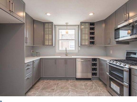 Side entrance rehabbed twin in Roxborough. Main floor features all hardwood floors, new tiled bath, new kitchen with porcelain tiled floors, great cabinets, with glass and back-lighting, wine rack, lots of cabinet and drawer space, pull out corner cabinets, soft-close drawers,quartz counter tops, microwave, double oven, and five burner range. Also, LED recessed lighting, freshly painted, great closet space, ceiling fans in each bedroom, and sunny main floor. Main bath has all new plumbing and electric, same as full bath in finished basement.Finished basement features a space for an office/study/playroom along with a great room with sliding doors going out to a cozy backyard and patio with a pergola overhead. The yard goes all the way down the incline to the fenced yard on Livesy. Think terraced garden, cantilevered deck, large shed, etc. All concrete in the patio and front is new. There is also motion sensor outdoor lighting front and back.LED recessed lighting throughout the home.Electric is upgraded and kitchen, and bath feature all new plumbing. All of this and a garage too. Roof is 5 years, roof side shingles are new. Vinyl tilt out window throughout. Close to parks, shopping and public transportation See this home now; it wont last.