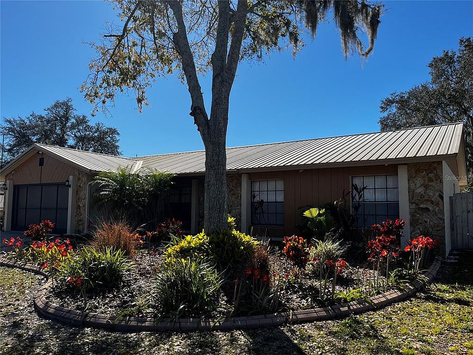 Back on Market after financing issue with buyer! Pool home in Bloomingdale! This 4-bedroom, 2.5-bath home is now available for showings! Features include: upgraded kitchen with granite counters and newer appliances, 50-year metal roof, A/C and water tank 2019, pavers on pool deck, pool refinished in 2017, exterior painted 2020, security cameras stay, garage door screening for extra living space, wood burning fireplace, double paned sliders to pool from family room, all solid surface floors for easy cleaning, 2 living areas, 2 eating areas, fenced back yard, storage shed, large inside laundry room with lots of storage, plus community park is right down the street! Great location, and near restaurants and shopping! Come and see today!