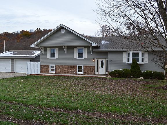 Spacious and inviting split-level home set on a large lot with beautiful country views. The property features a detached two-car garage, long driveway, and generous yard. Inside, the multi-level layout provides flexible living and gathering spaces suitable for a variety of lifestyles. The back yard provides an outdoor retreat complete with a large deck and in-ground pool perfect for entertaining or relaxing. This well-kept home combines comfortable living with exceptional outdoor amenities in a peaceful rural setting. Recent exterior updates include new siding, gutters, soffit, roof, front and rear concrete sidewalks, and pool liner for 2025. Inside you will find new flooring and carpet. Rear deck was remodeled in 2024 and windows replaces in 2020.